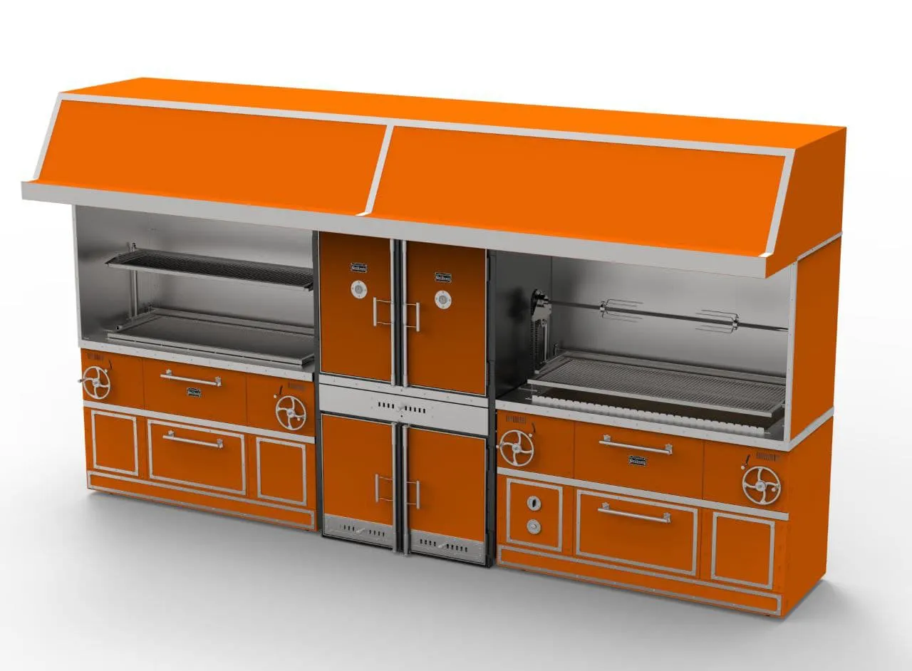 - Левая секция-гриль с двумя регулируемыми по высоте решётками 1000х500мм каждая