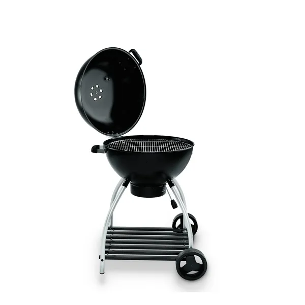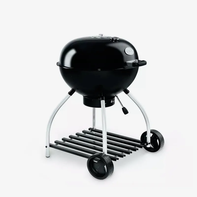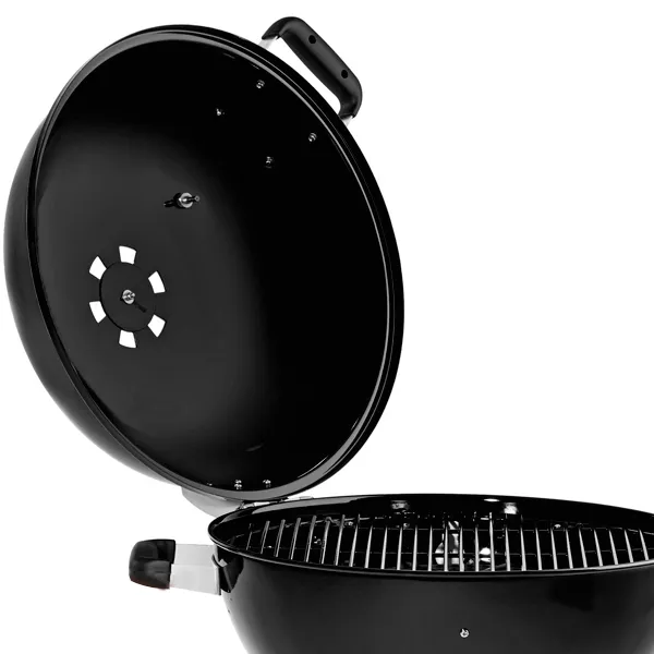 Благодаря специальным шарнирам можно очень удобно открывать и закрывать крышку гриля. Жаропрочный и устойчивый к коррозии корпус гриля покрыт фарфоровой эмалью чёрного цвета. Закрытая съёмная чаша для золы позволяет легко и быстро очистить гриль от пепла. Быстрая и предельно простая сборка: гриль поставляется в полусобранном состоянии.Большой термометр в корпусе из нержавеющей стали с хорошо читаемым циферблатом: измерение температуры в °С и в °F.