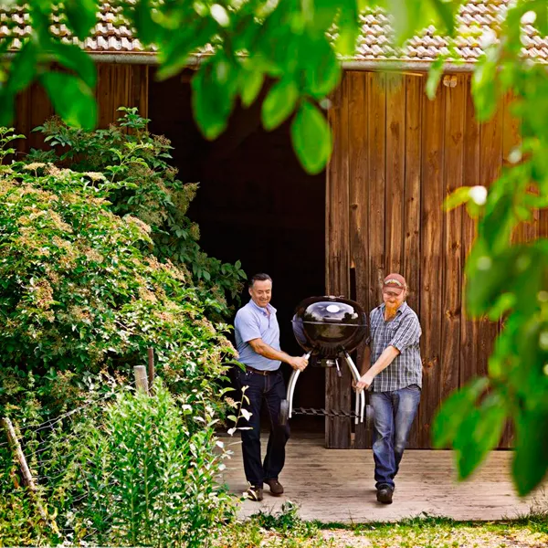 Благодаря большим и надёжным колёсам с широким профилем, можно удобно перемещать гриль не только по терассе, но и по газону.