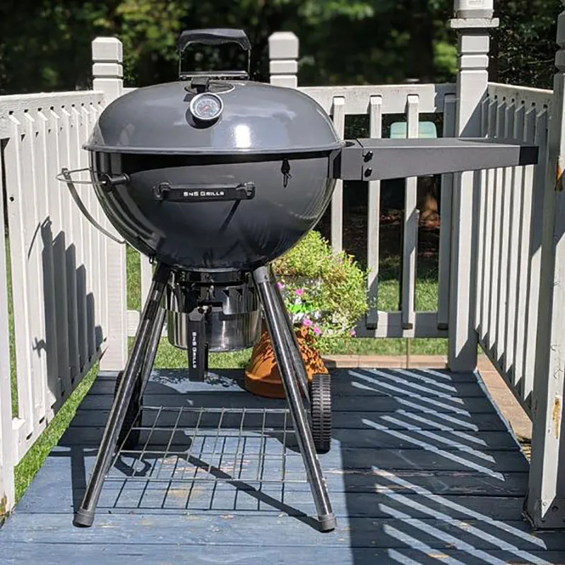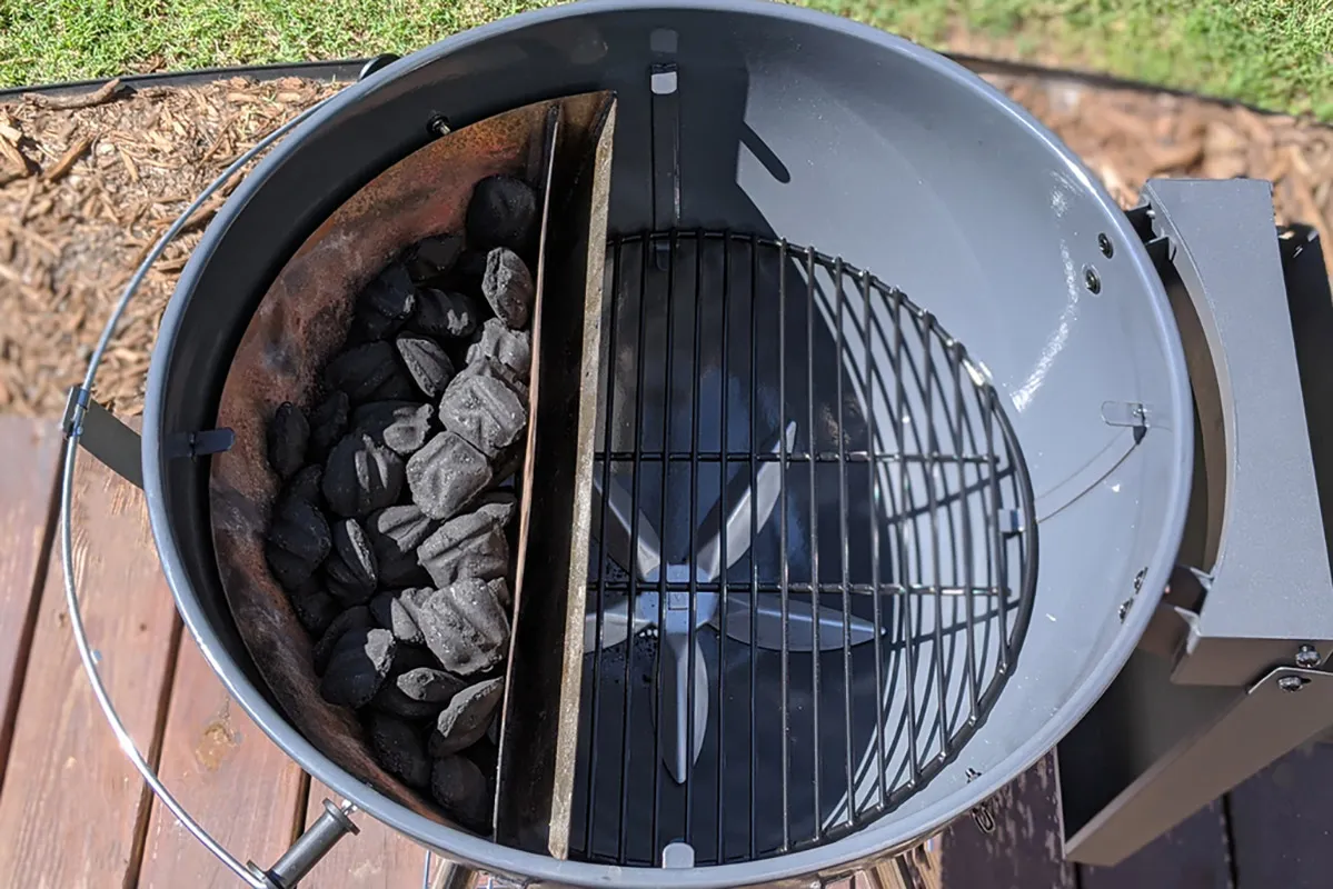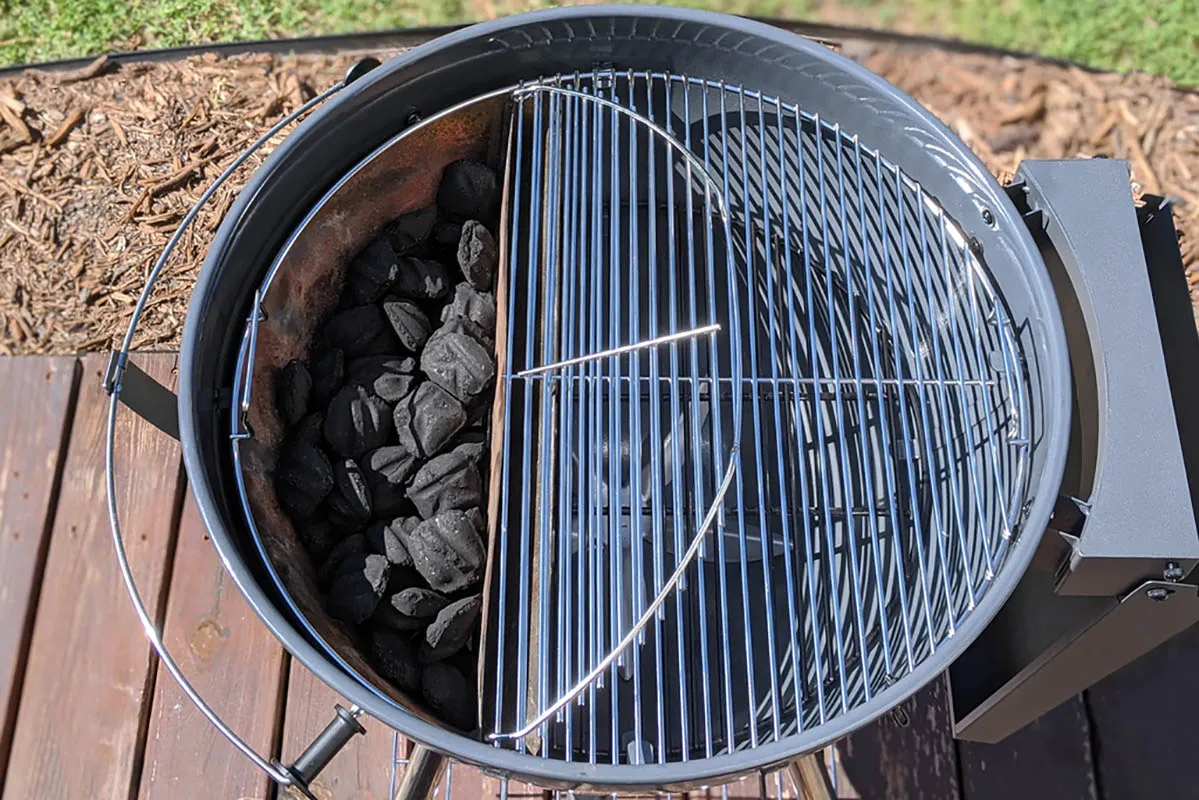 - Решётка EasySpin 57 см из нержавеющей стали — долговечная, с откидной створкой, чтобы добавлять уголь в гриль, не снимая решётку