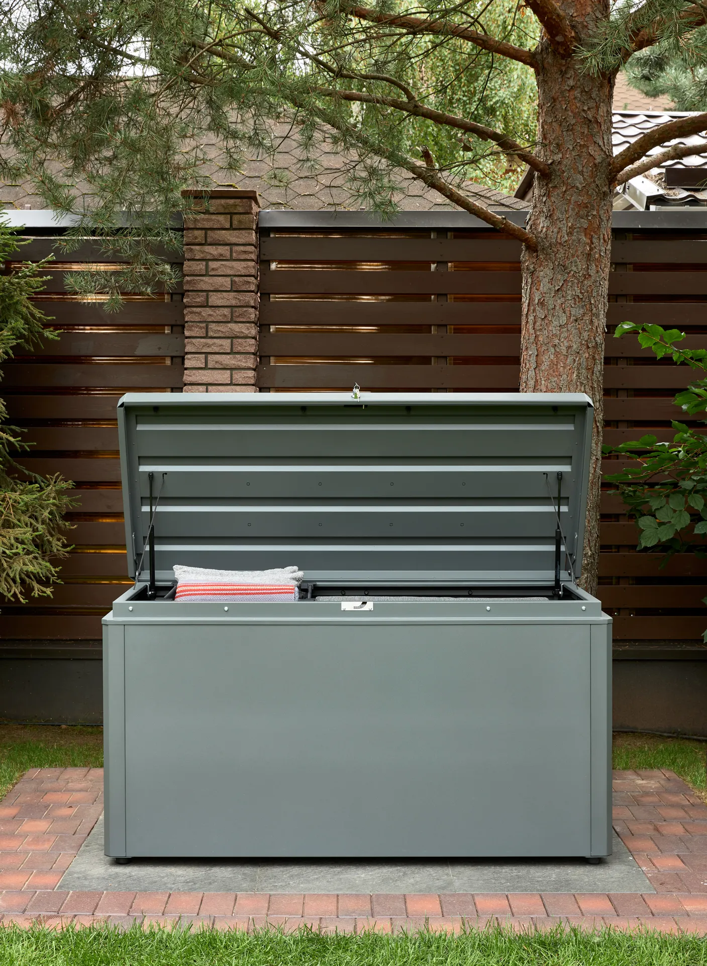 Уличный бокс для хранения элементов мебели, аксессуаров для гриля, игрушек - это отличное решение для защиты ваших вещей от погодных условий. Он обеспечивает безопасное хранение подушек, пледов и других предметов, защищая их от влаги и сырости. Благодаря лабиринтной системе уплотнения, влага не проникает внутрь, а встроенная вентиляция обеспечивает циркуляцию воздуха, предотвращая образование сырости и сохраняя вещи в хорошем состоянии. Внушительные размеры короба (1600x700x850) позволяют хранить большой объем