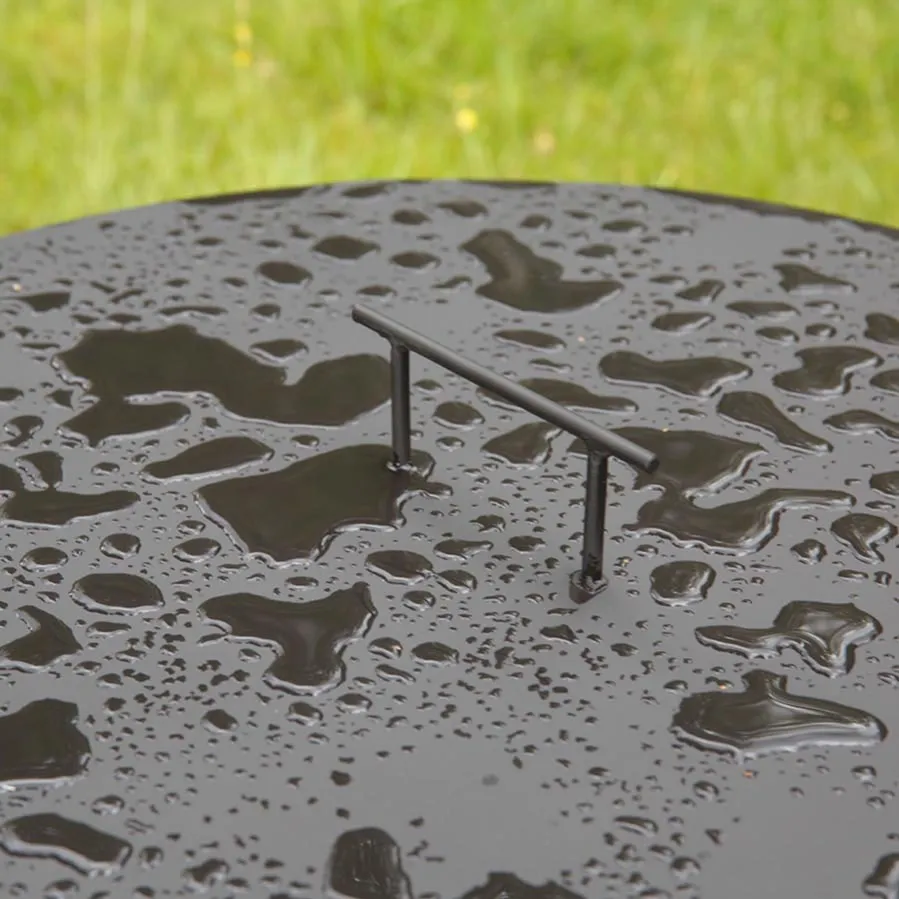 Крышка для чаши защищается очаг от атмосферных осадков и пыли, предотвращает раздувание золы по участку после прогорания костра при ветровых потоках.