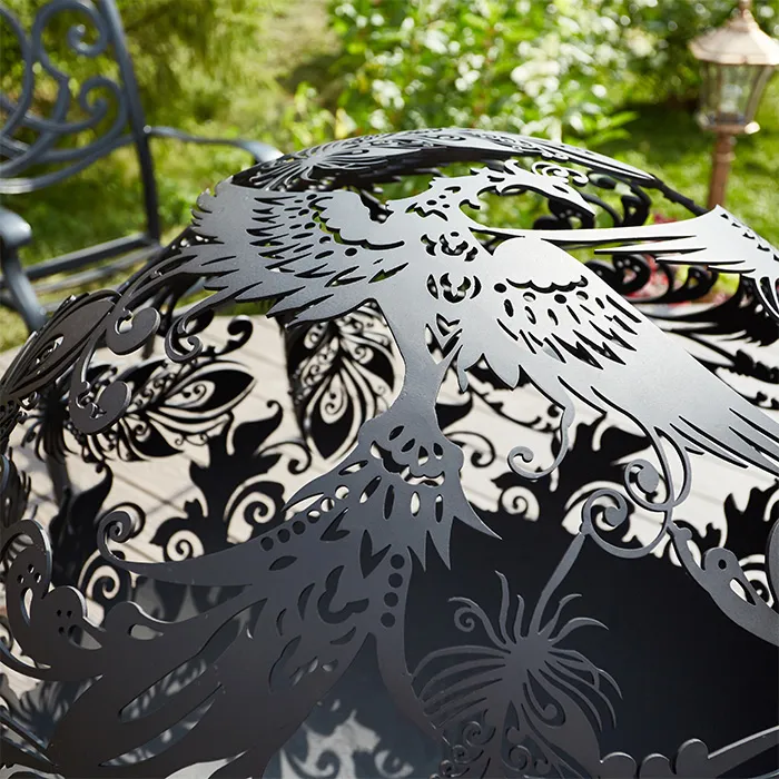 - Дизайн. Высокотехнологичная лазерная резка позволяет изготовить точный рисунок в мельчайших подробностях. Очаг может быть в черном цвете или цвете Картен