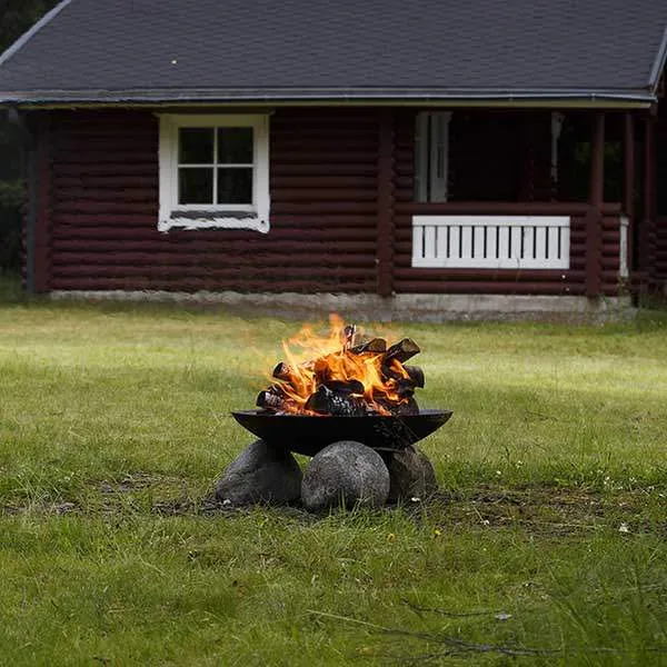 Вы можете самостоятельно придумать и разработать подставку и установить чашу на нее. Чашу можно поставить как на булыжники, так и на специально подготовленное для костровища основание. И в том и в другом случае, она будет эффектно смотреться на вашей даче!
