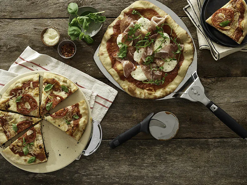 Прочная лопатка для пиццы из нержавеющей стали позволяет легко выкладывать тесто на камень для пиццы или на решетку, а затем снимать его, когда корочка станет золотой и сыр расплавится.