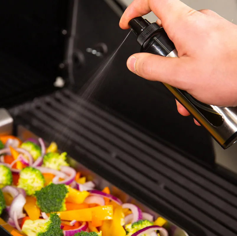 - Равномерное распыление — предотвращает прилипание и придаёт блюдам лёгкий аромат масла без излишков
