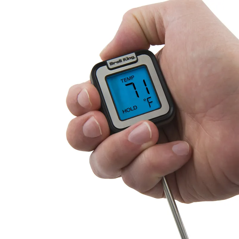 Цифровой термометр с подсветкой Broil King 61825 — точность и удобство в любое время сутокЦифровой термометр Broil King артикул 61825 — это надёжный помощник для идеального результата при приготовлении мяса, рыбы, птицы, запеканок и других блюд на гриле, в духовке или на плите. Благодаря мгновенному измерению температуры, вы получаете точные данные всего за несколько секунд, что особенно важно при работе с деликатными продуктами.
