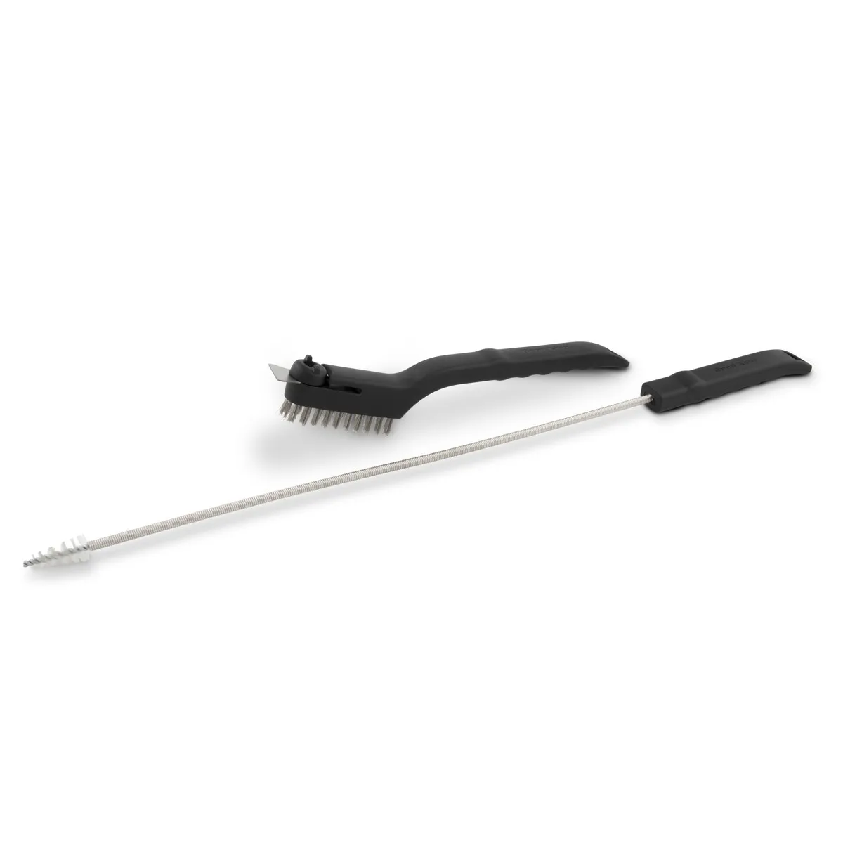 Удобная щетка с гибким щупом и скребок позволят удалить любые загрязнение в горелках и котле и вернут былую мощность вашему газовому грилю.
