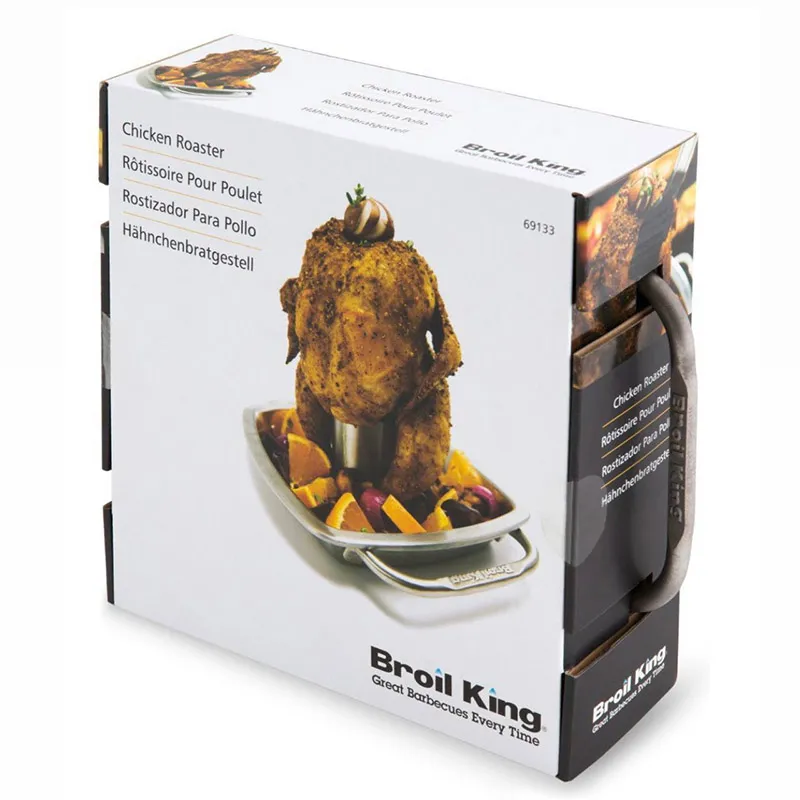Broil King Ростер для курицы (арт. 69133)Поднимите искусство приготовления целой курицы на новый уровень с фирменным ростером от Broil King! Этот удобный и эргономичный аксессуар разработан специально для вертикального запекания птицы на гриле или в духовке, обеспечивая равномерное пропекание, сочность мяса и аппетитную хрустящую корочку со всех сторон.