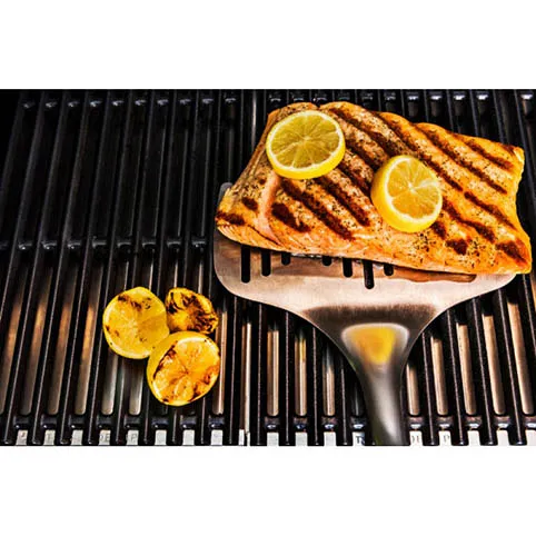Широкая стальная лопатка XL от Char-Broil — незаменимый инструмент для безопасного и удобного переворачивания, перемещения и подачи крупных или деликатных блюд на гриле. Благодаря увеличенной рабочей поверхности вы легко справитесь даже с большими стейками, целыми рыбами, овощными решётками или домашними бургерами.