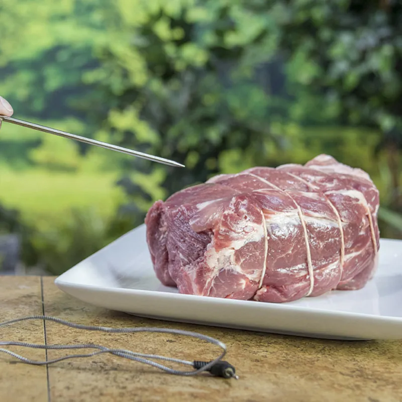 Термометр оснащён большим цифровым дисплеем, на котором отображаются точные данные о температуре в реальном времени. Встроено 15 программ приготовления и возможность выбора из 5 видов мяса (говядина, свинина, баранина, птица, рыба) — устройство автоматически определяет рекомендуемую степень прожарки и подаёт сигнал, когда блюдо готово.