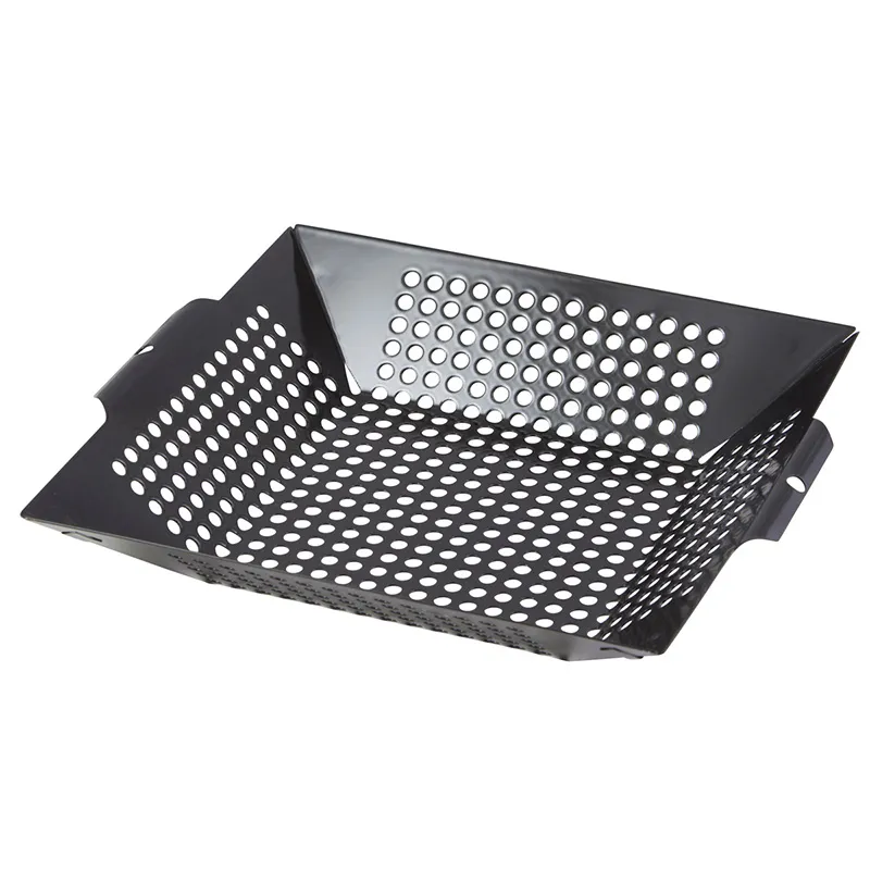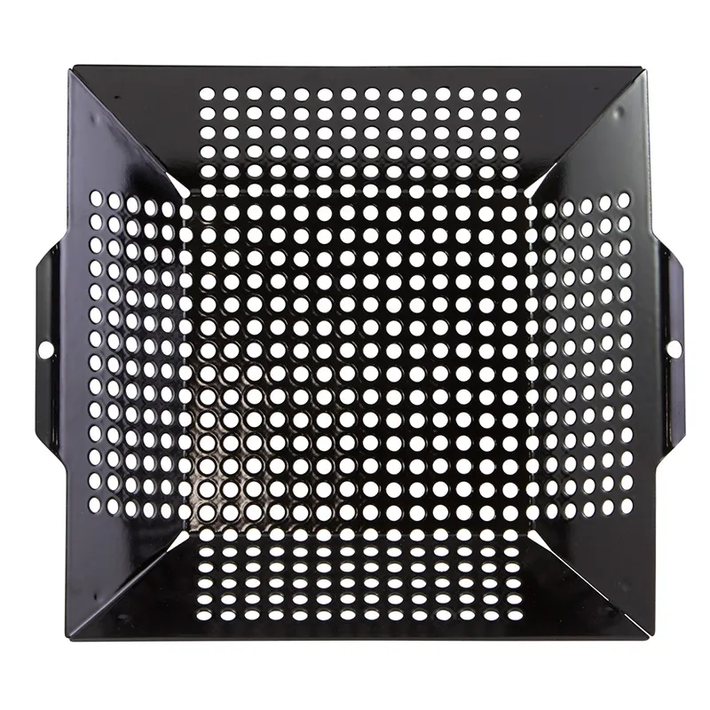 Перфорация обеспечивает циркуляцию дыма и жара, придавая блюдам насыщенный аромат копчения, при этом мелкие или нежные продукты не проваливаются сквозь решётку. Глубина противня позволяет использовать его как вок на гриле, сохраняя соки внутри и предотвращая разбрызгивание масла.