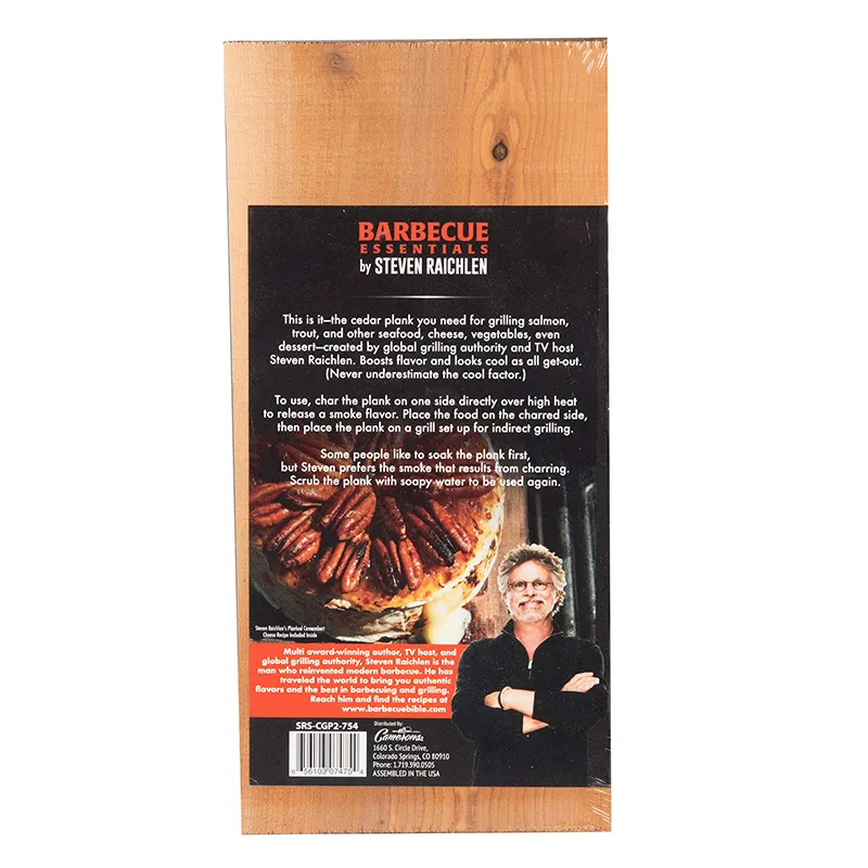 Откройте для себя один из самых древних и ароматных способов готовки на гриле — приготовление на кедровых досках! Этот набор из двух досок из натурального красного кедра разработан по рекомендациям легендарного эксперта по барбекю Стивена Райхлена и идеально подходит для рыбы, морепродуктов, овощей и даже сыра.