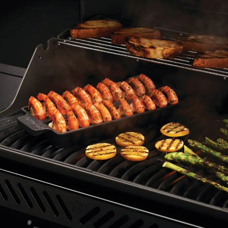 Эмалированная чугунная форма Napoleon предназначена для приготовления больших креветок на гриле или в домашней духовке. Она рассчитана на 22 креветки.