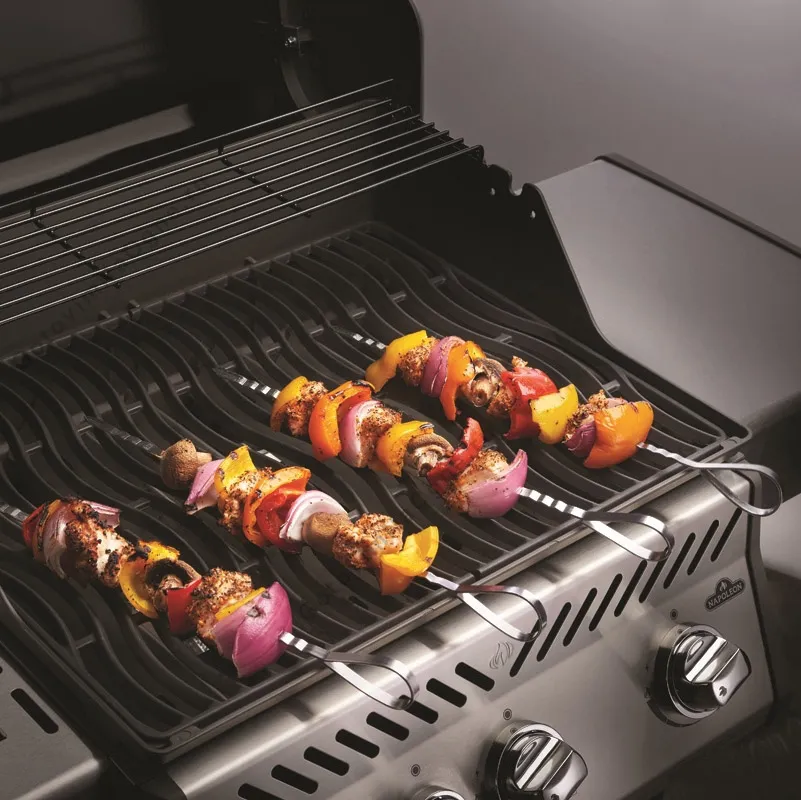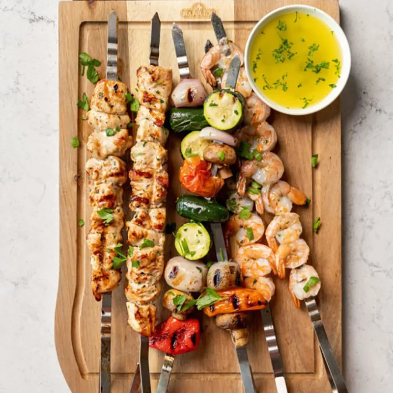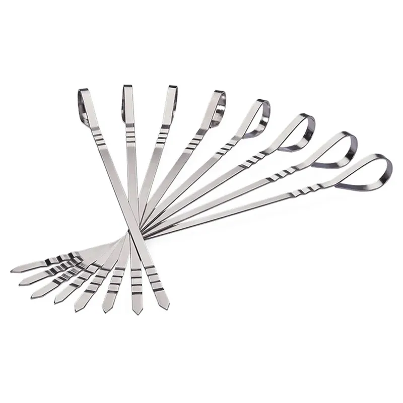 Набор из восьми шампуров длиной 35 см для приготовления шашлыка, овощей и кебабов.