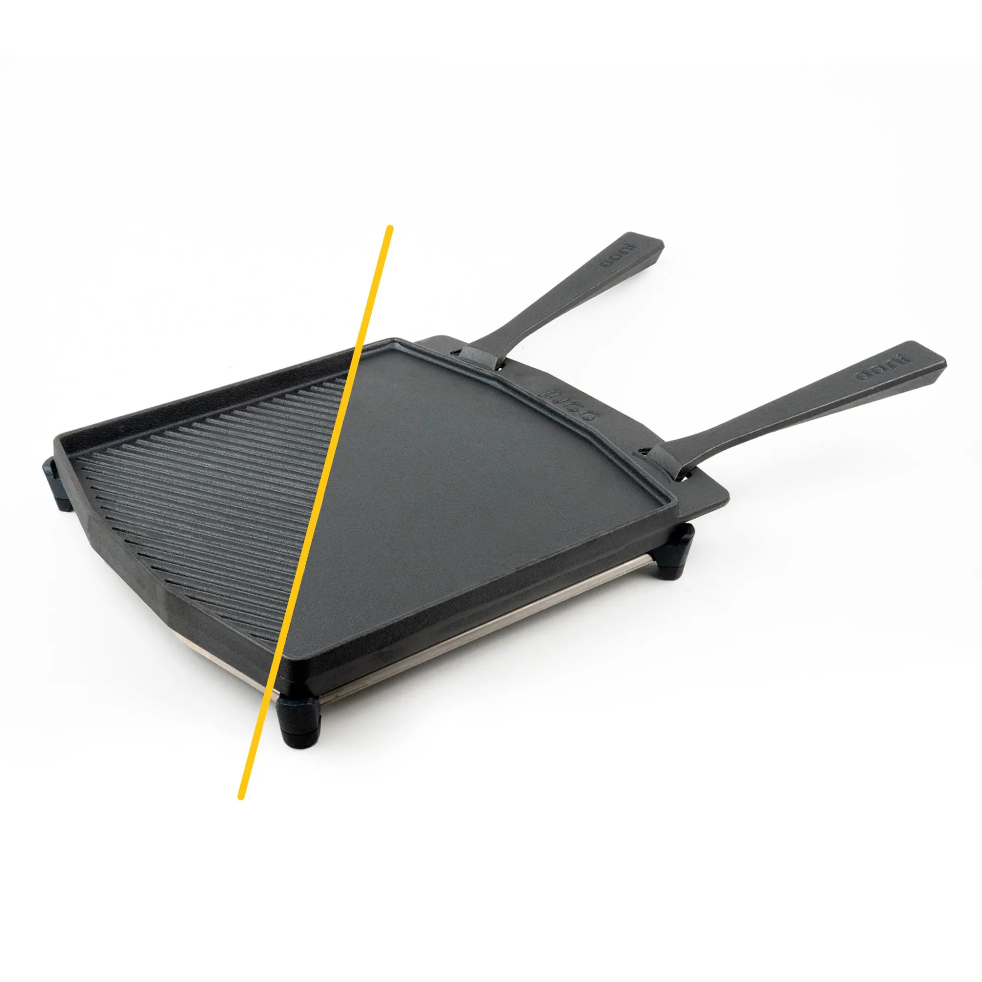 Это сковорода-гриль? Или плоская сковорода? И то, и другое! Познакомьтесь с двухсторонней сковородой-гриль Ooni. Используйте универсальную гладкую сторону Sizzler для блинчиков или яичницы, или переверните и используйте Ooni Grizzler для стейков или ребрышек, чтобы получить идеальные румяные полоски гриля на мясе. Используйте специально разработанные съемные ручки, чтобы безопасно перемещать двухстороннюю сковороду-гриль Ooni в духовку и извлекать ее из нее, пока она горячая, или подавайте ее прямо на стол на прилагаемой сервировочной доске из бука.