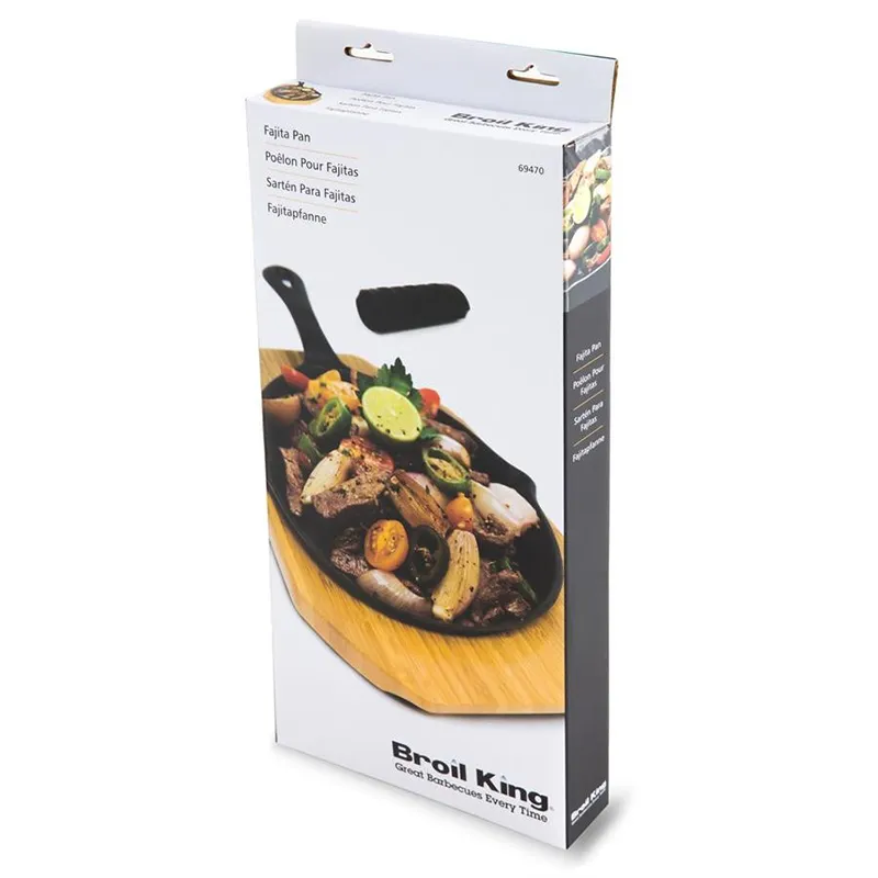 Чугунная сковорода Broil King 69470 с аксессуарами — идеальный набор для фахитас и жарки на грилеЧугунная сковорода Broil King артикул 69470 — это универсальный кулинарный инструмент, созданный специально для приготовления блюд прямо на решетке гриля. Благодаря высокой теплоемкости чугуна, она равномерно распределяет жар и сохраняет температуру, обеспечивая идеальную обжарку мяса, овощей, морепродуктов и, конечно, сочных фахитас.