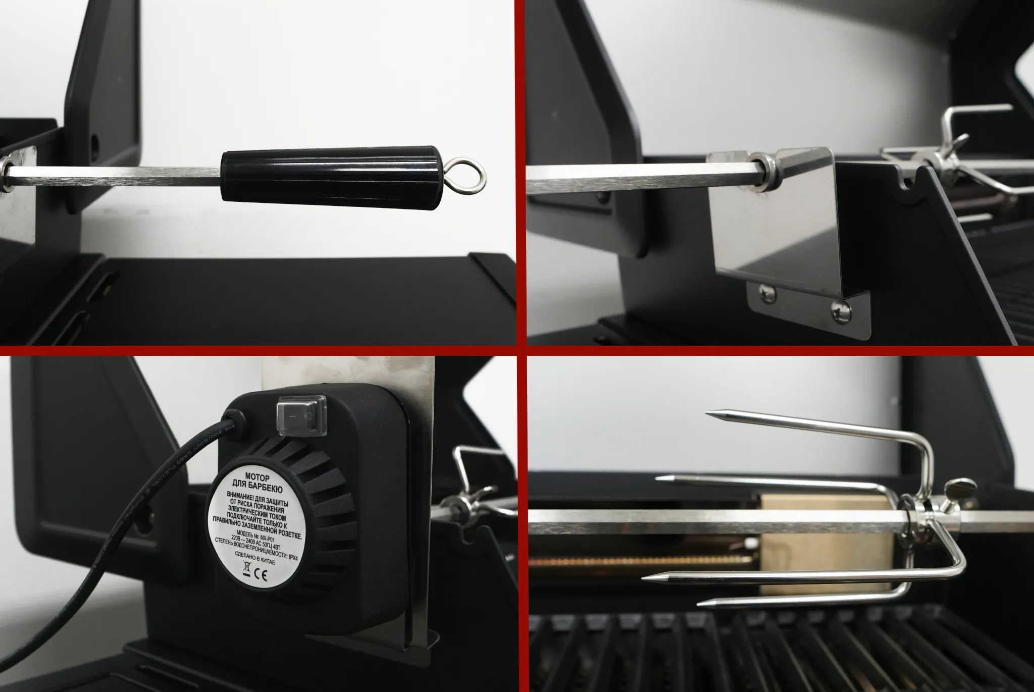 Модель вертела разработана специально для газового гриля Chimera Elite 500. Благодаря мощному мотору он способен проворачивать большие куски мяса и обеспечивать равномерное приготовление. Мотор работает от электросети 220V. Установка вертела проста и не требует специальных навыков и приспособлений. Поверхность вертела легко очищается так как имеет антипригарное покрытие.Сведения