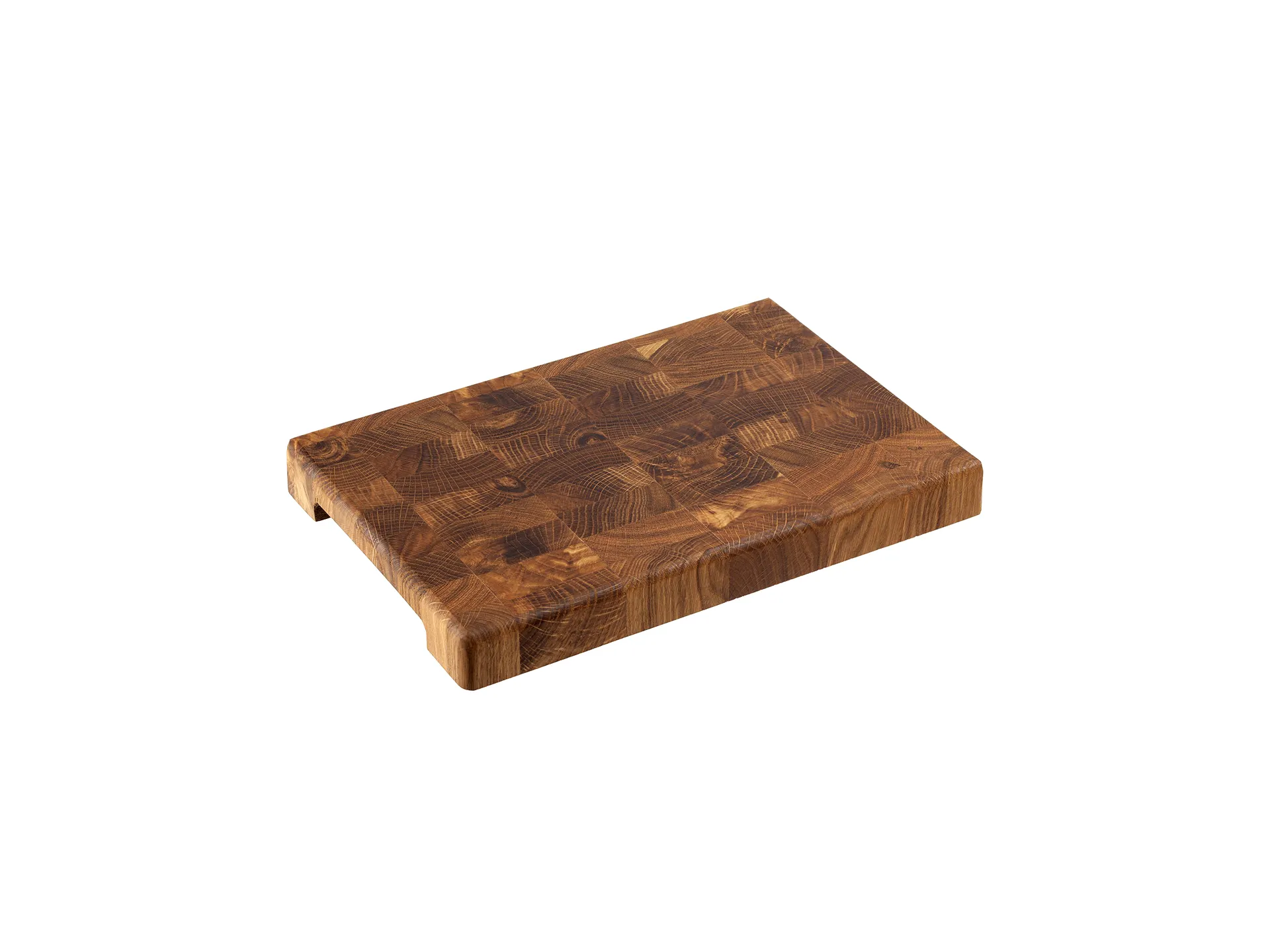 Профессиональная торцевая доска из дуба, покрытая минеральным раствором и пчелиным воском. Массивная, красивая, исключительно прочная, она служит намного дольше обычных досок, не впитывает запахи и отлично сочетается по стилю с гриль-очагом DIO!