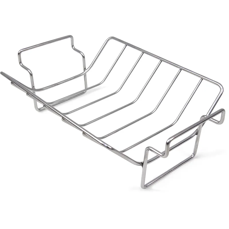 Решётка для рёбрышек V-образной формы, двухсторонняя, имеет 6 секций. Удобно удерживает под наиболее оптимальным для приготовления углом ребрышки, большие куски мяса или даже целую птицу. Поставьте решетку в соответствующий прямоугольный поддон для сбора жира, чтобы избежать воспламенения капель стекающего жира во время запекания. Затем поместите поддон на решётку в EGG. Этот способ непрямого приготовления гарантирует, что Ваше мясо или птица будут нежными и сочными.