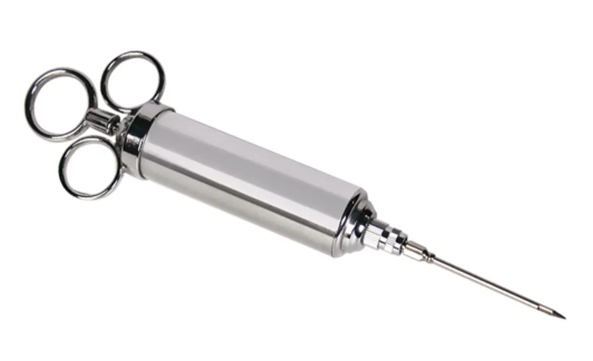 С помощью кулинарного шприца легко и удобно приготовить сочное и ароматное мясо. Игла длиной в 6,5 см обеспечит точный прокол для введения соусов, маринадов, растопленного сливочного масла и других жидкостей.