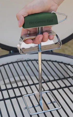 Закрепив съёмник для чугунной решётки и повернув его на четверть оборота, Вы сможете быстро и легко поместить чугунную решетку в Big Green Egg и снять её. Рукоятка обеспечивает надежный захват и защитит Ваши руки от ожогов.