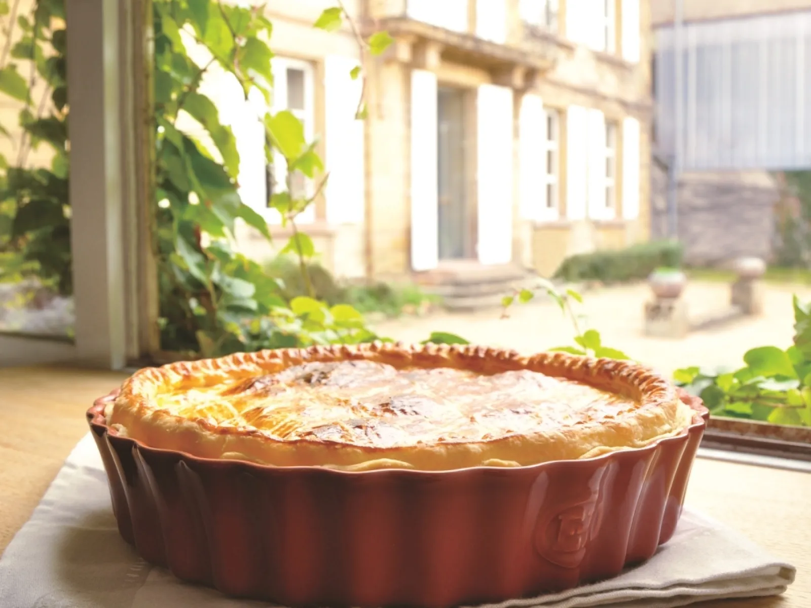 Форма для выпекания пирога, киша или клафути. Клафути - любимый французами десерт из нежного теста и фруктовой начинки. Для его выпечки очень важен постоянный, равномерный нагрев. Форма для пирога обеспечивает все эти условия. Она изготовлена из высококачественной жаростойкой керамики и покрыта прочной стекловидной глазурью, стойкой к царапинам от ножа или вилки.