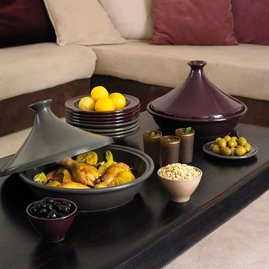 Секрет конструкции тажина — в его крышке: она довольно высокая, и в верхней своей части нагревается значительно слабее, чем в нижней. Пар, образующийся во время приготовления, конденсируется на крышке и в отличие от посуды с обычной, плоской крышкой, не капает на ингредиенты, а стекает по пологим стенкам обратно на дно тажина, где снова испаряется. Процесс повторяется вновь и вновь. Таким образом, в тажине создается уникальный микроклимат, продукты готовятся снизу — за счет нагрева основания, а сверху — практически, как на пару, поэтому мясо, рыба и овощи становятся очень нежными и приобретают особый вкус.