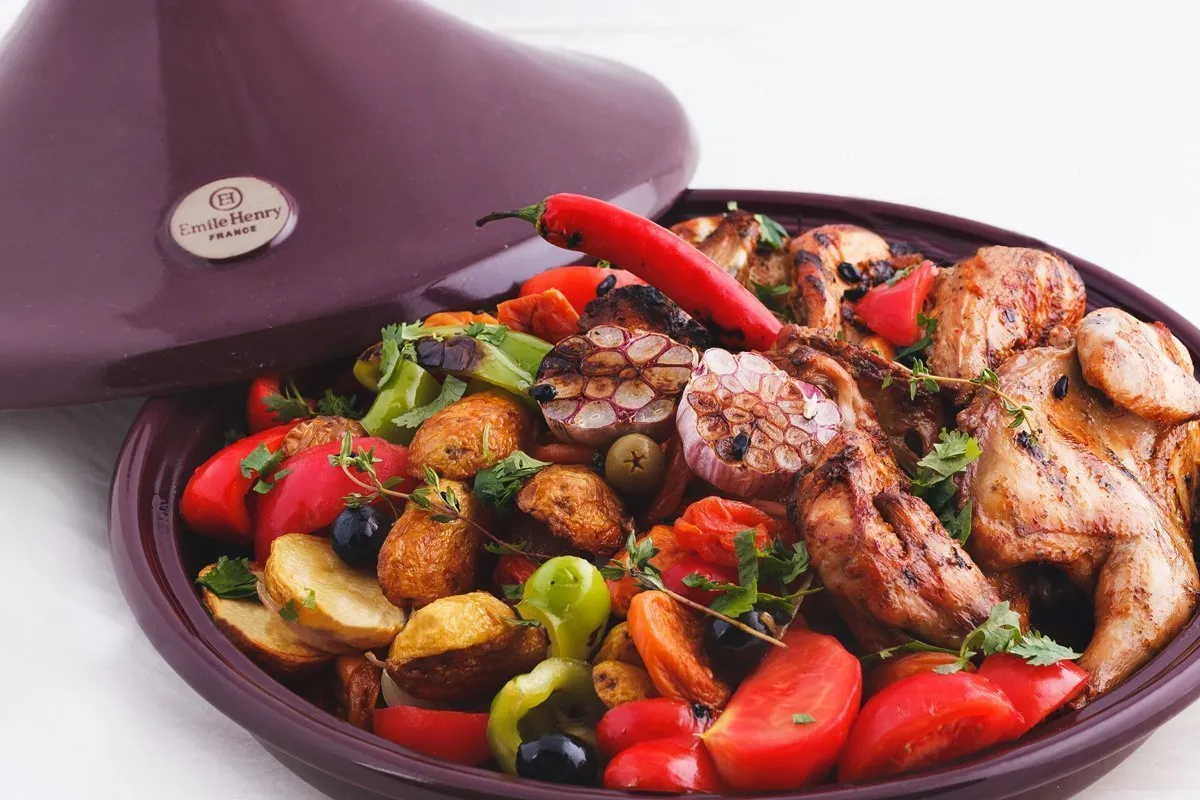 Благодаря конусообразной форме крышки, пар, поднимающийся от готовящегося блюда, многократно конденсируется в верхней ее части и спускается вниз, поэтому мясо, рыба и овощи становятся очень нежными и приобретают особый вкус. Позвольте легким и ароматным соблазнам увлечь вас: тажин из курицы с лимоном, тажин из морепродуктов, вегетарианский тажин… Доверьтесь интуиции и инстинктам, как это делают марокканцы, и создайте свой собственный рецепт тажина! 32-сантиметровый тажин рассчитан на 8-12 порций. Его можно помещать в духовку, в микроволновую печь и на любой источник прямого нагревания, кроме индукционных плит. Для индукционных плит подойдет серия Delight. Как и любую другую продукцию Emily Henry, тажин можно помещать в посудомоечную машину, не боясь, что со временем он потеряет свой цвет.