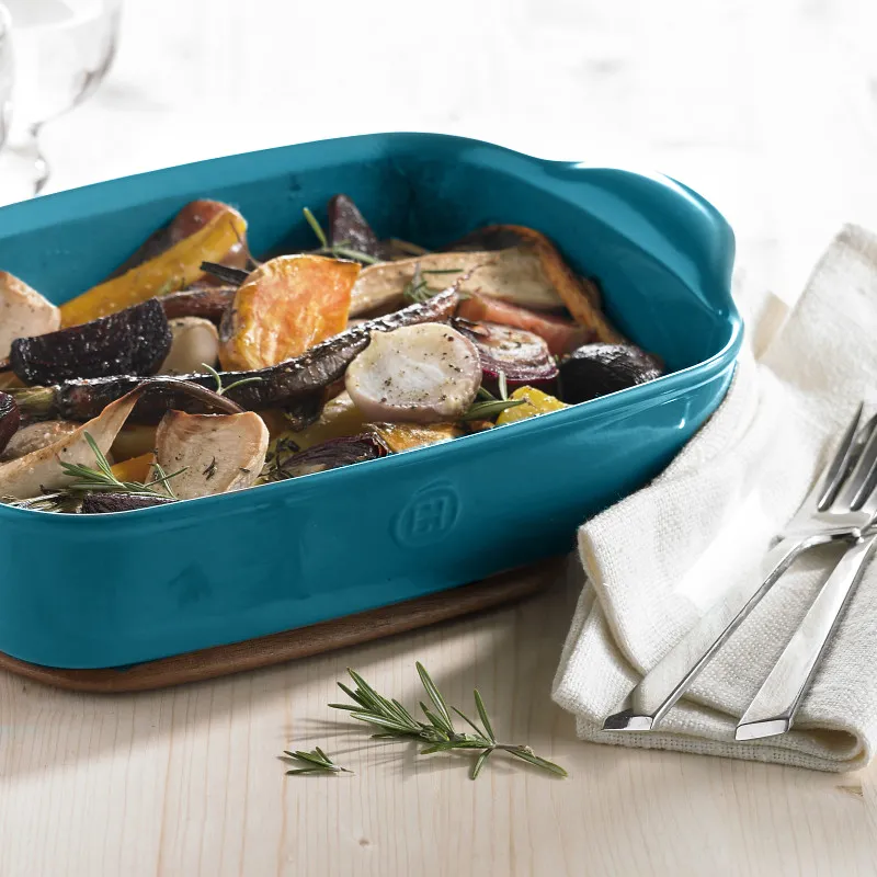Форма выполнена в новом цвете Лазурь. Лазурь — это воплощение элегантности и спокойствия на Вашей кухне, прекрасно сочетается с остальными цветами форм от Emile Henry.