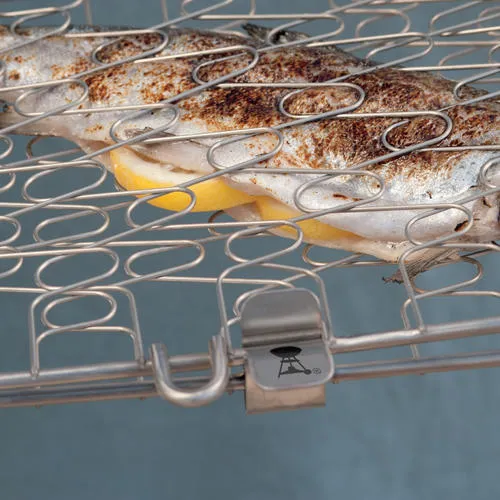 Фирменная сетка Weber для запекания рыбы и порепродуктов из нержавеющей стали. С таким аксессуаром рыбка никогда не провалится и не прилипнет к решетке. Подходит для всех угольных грилей диаметром от 57см и более, а также для больших газовых Spirit и больше