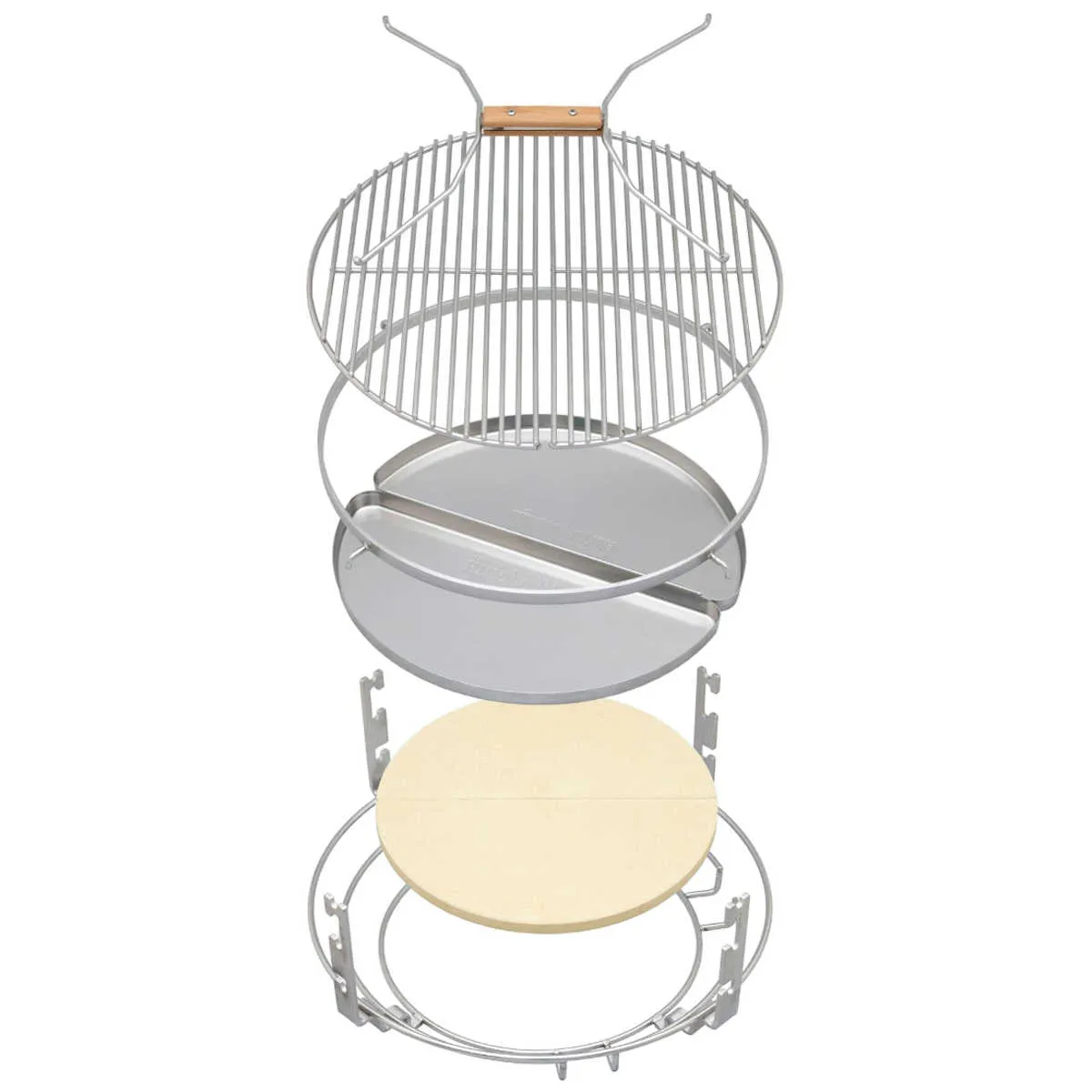 Это разделение начинается с жароотсекателя, продолжается поддонами для сбора жира и заканчивается решеткой для гриля, которую вы даже можете повесить на разной высоте.