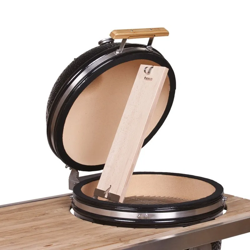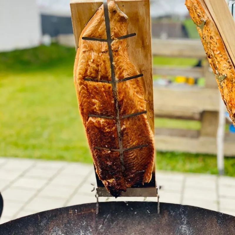 Доска из массива тика предназначена для копчения рыбы в гриле Monolith Le Chef. Филе рыбы крепится на доске с помощью специального зажима, а основание доски прикручивается к решётке гриля. Механизм крепления устроен таким образом, что рыба зависает под наклоном по отношению к углям, "смотрит" на них. Приготовление происходит с закрытым куполом гриля, что позволяет добиться максимальной сочности.