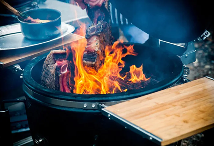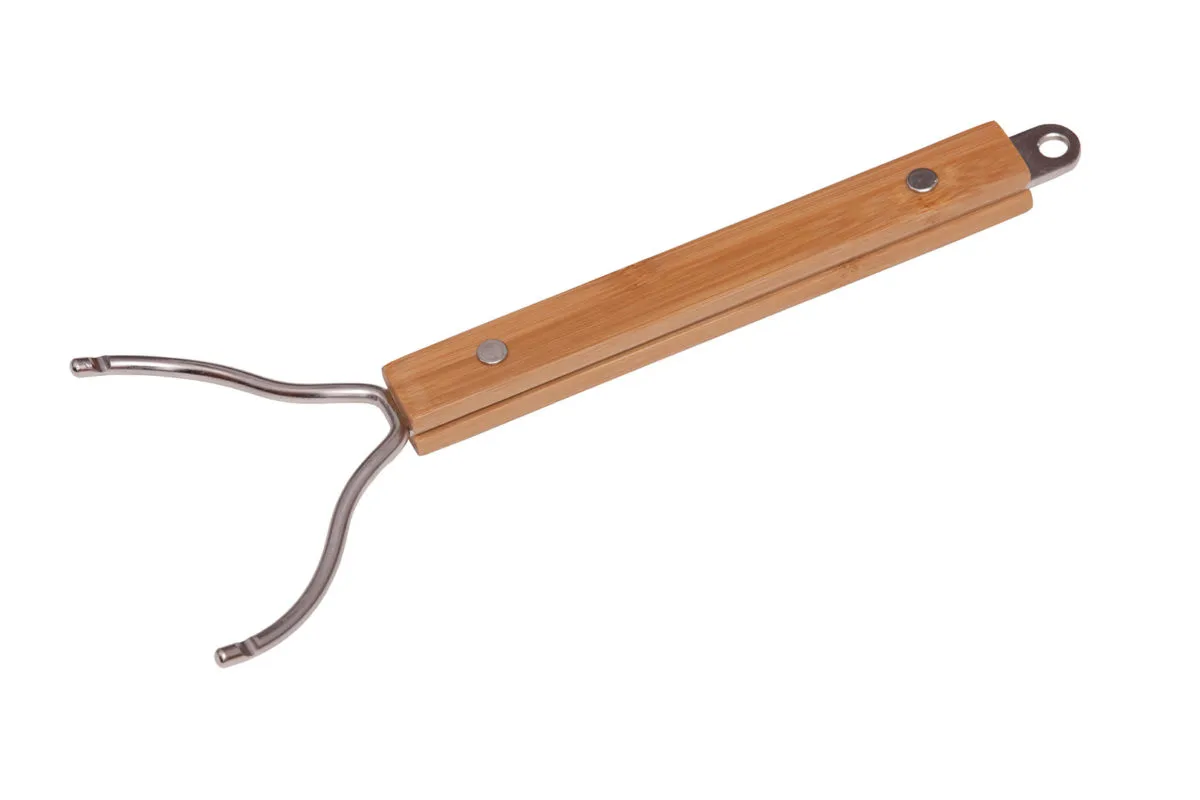 Прочная ручка для решетки из полированной нержавеющей стали с бамбуковой ручкой для безопасного и легкого подъема и удаления решетки гриля. Подходит для решеток из нержавеющей стали и чугуна.