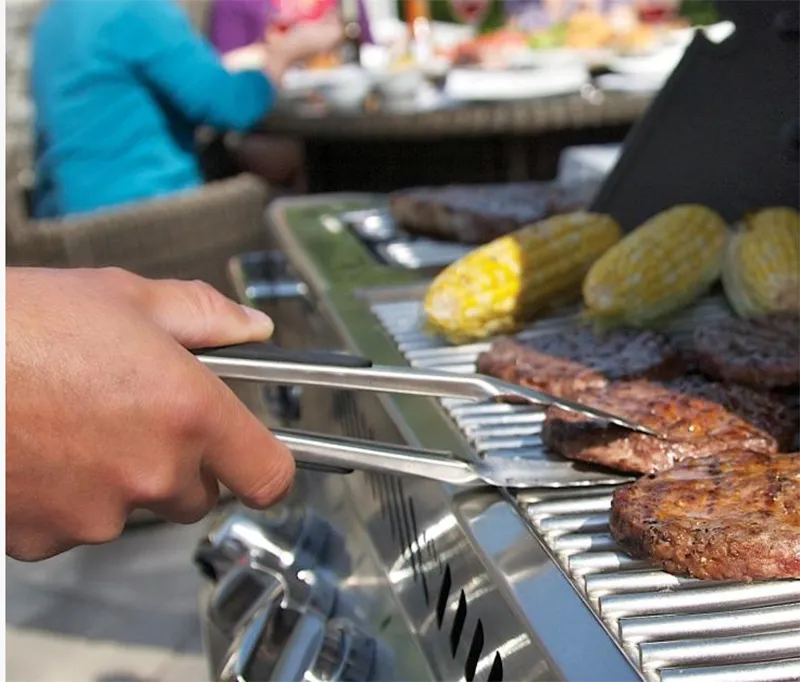 Щипцы из нержавеющей стали для удобства переворачивания продуктов на гриле.