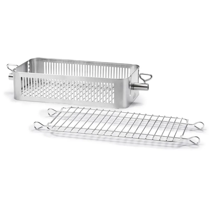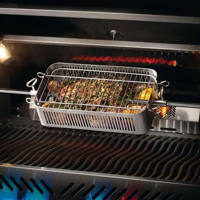 Насадка на вертел-корзинка Napoleon используется на вращающемся вертеле