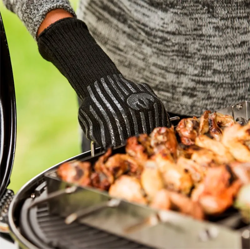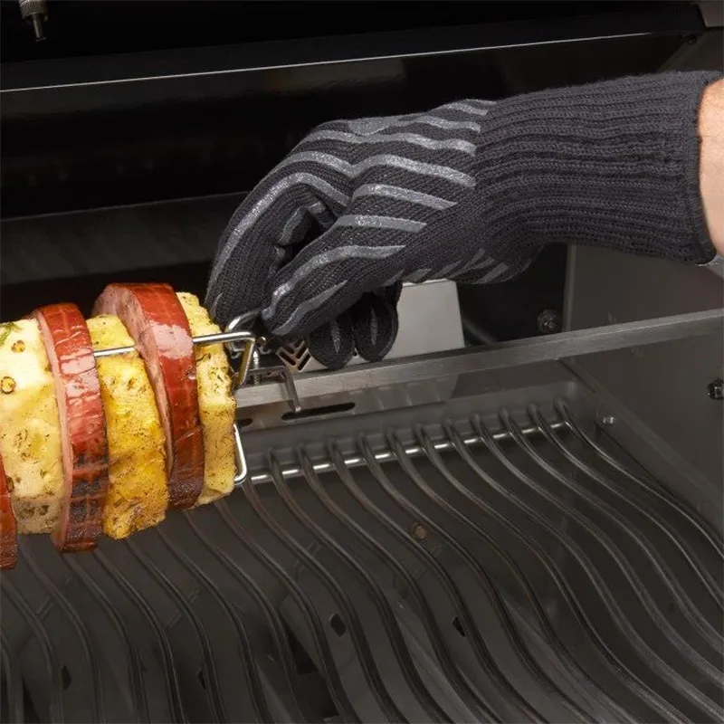 Жаростойкая двусторонняя перчатка Napoleon из арамидной ткани обеспечит защиту рук от высоких температур и позволит безопасно прикасаться к горячей поверхности противней и гриля.