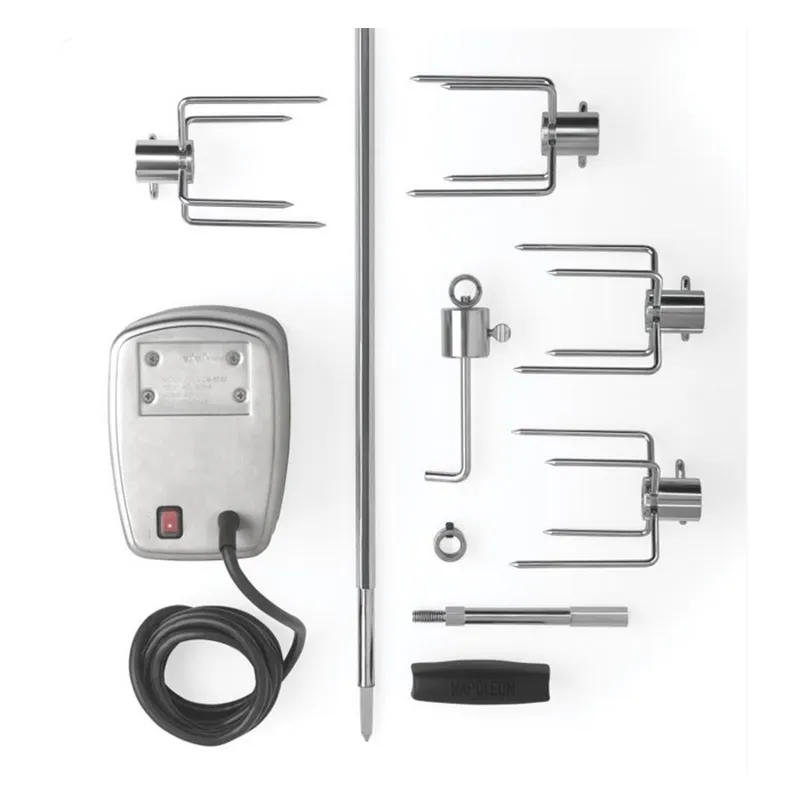 Превратите ваш гриль в профессиональную кухню — выбирайте Napoleon Вертел с 4-мя зажимами и электромотором для гриля 665 для идеальных блюд на любой праздник!