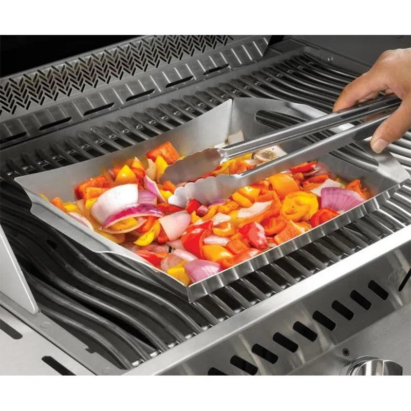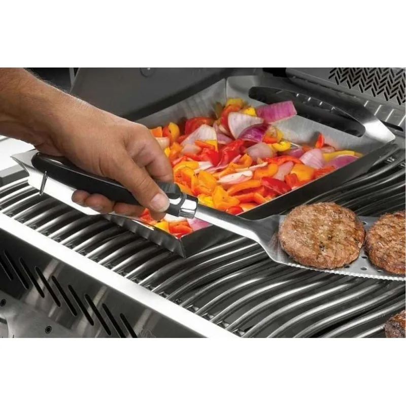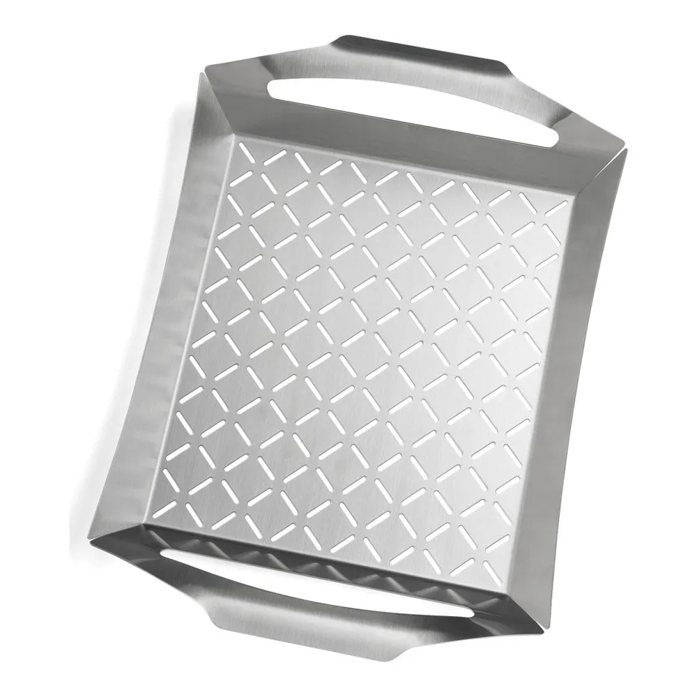 Идеальный для жарки картофеля, нежной рыбы, овощей и фруктов на гриле. Выполнен из высококачественной стали, можно использовать во время приготовления основного блюда.