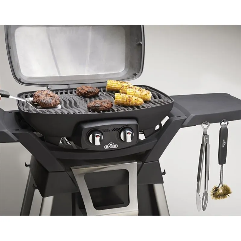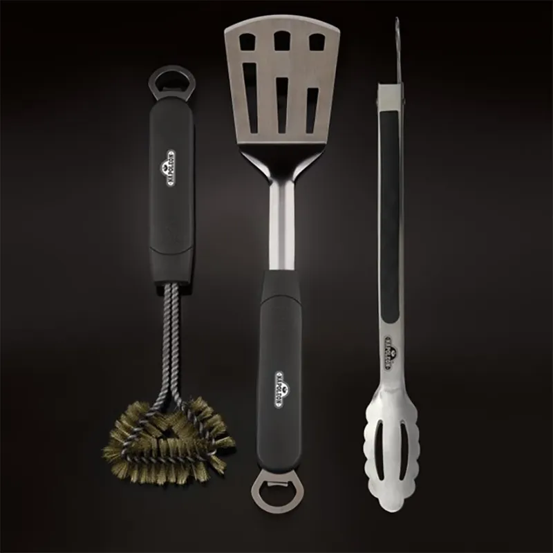 Набор из самых необходимых инструментов — щипцы , лопатка, щетка для очистки решеток. Профессиональное качество. Идеально подойдет для небольших мобильных грилей.