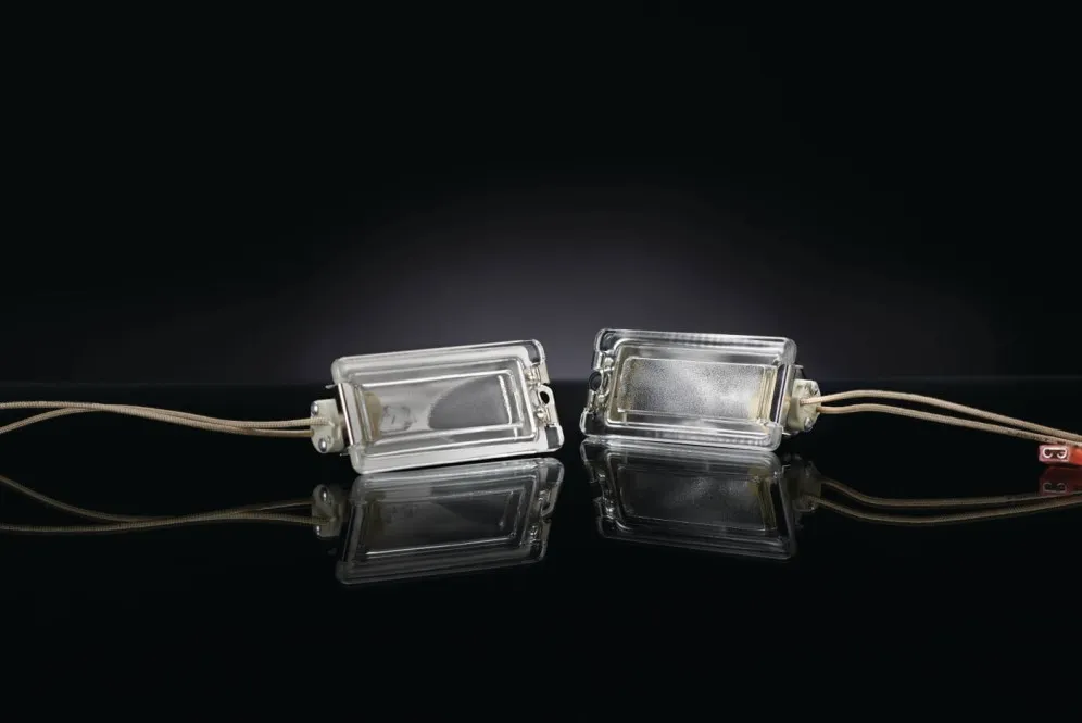 В комплекте две лампочки, две стеклянные крышки и два винта.