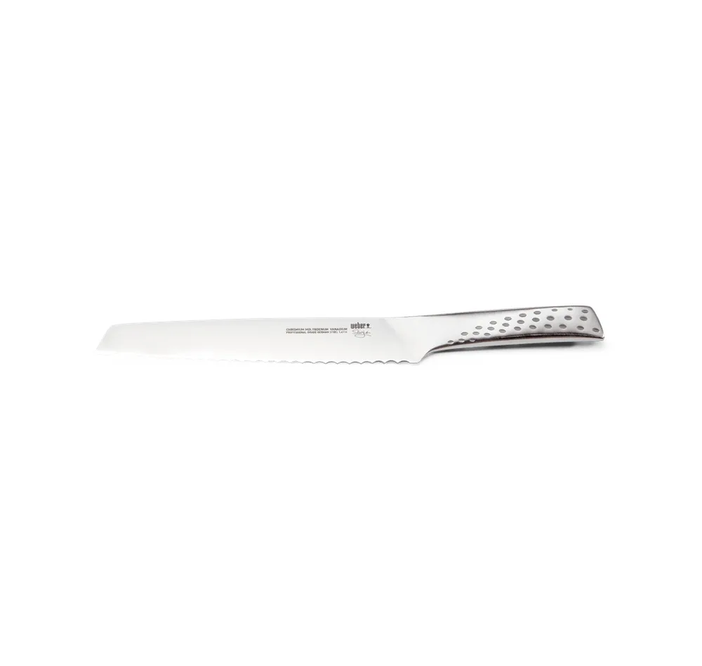 Подайте на завтрак теплые мягкие булочки, приготовленные на гриле, или дополните трапезу кусочками обжаренного на гриле хлеба с маслом и зеленью. Нож для хлеба Weber из нержавеющей стали, обеспечивающий оптимальный захват, — это отличный инструмент для безупречной нарезки хлеба.