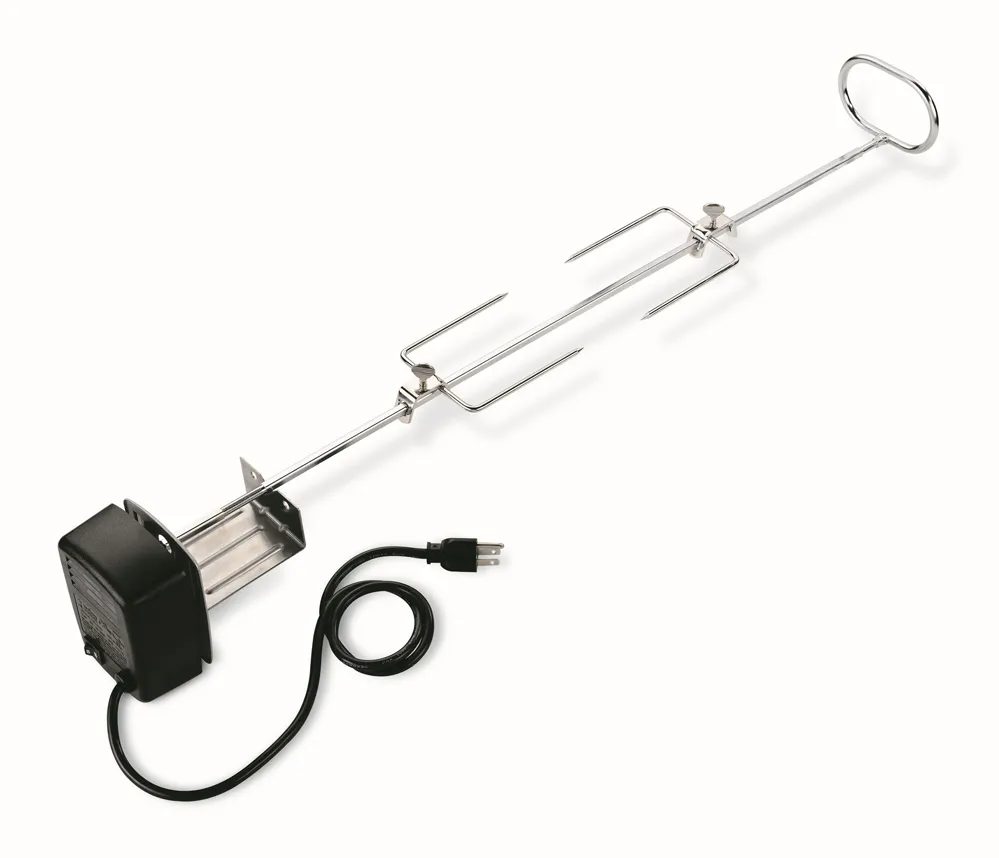 Специальный электрический вертел для гриля Genesis II 200/300 серии с регулируемыми вилочками для продуктов разного размера. Позволяет равномерно обжаривать крупные куски мяса и птицы.